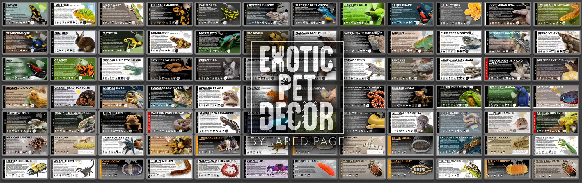 Exotic Pet Decor is a one-man-shop combining 25 years of professional graphic design / artistic experience with 20 years of exotic pet keeping to provide pet owners with informative, realistic, quality decor and signage. Read more about my exotic pet experience and hobbies and what makes me different from other companies who are just out to make a buck.